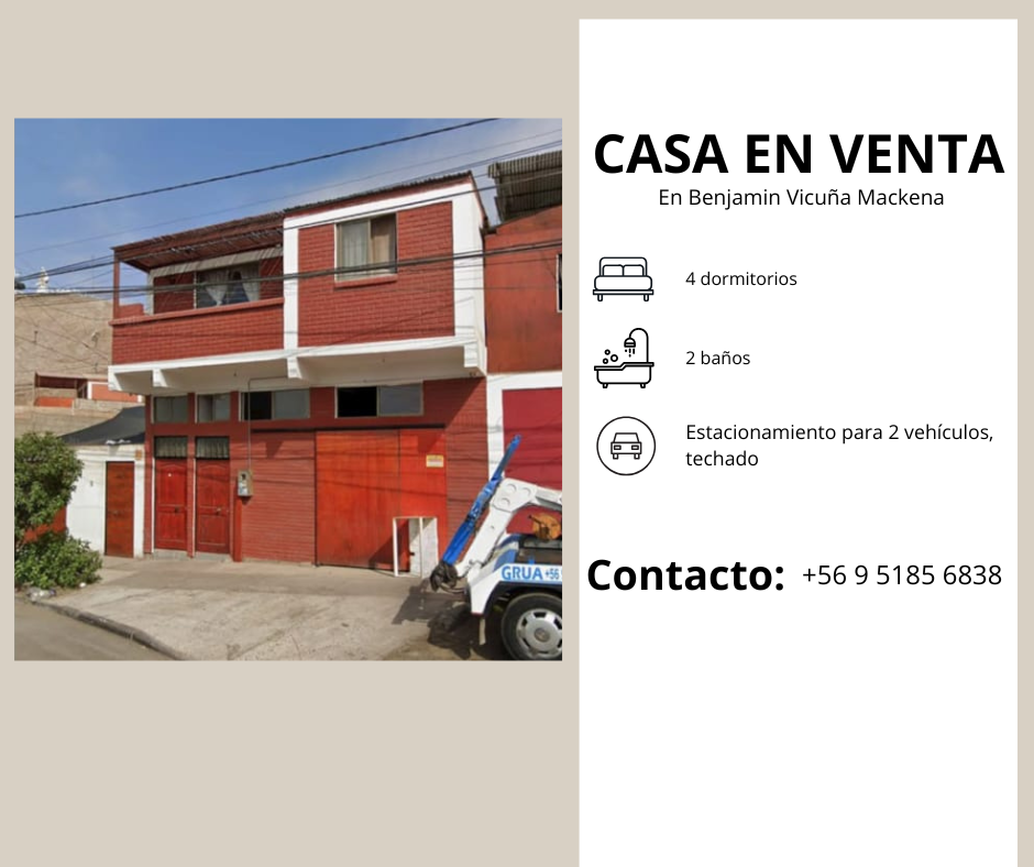 Casa en Venta, en Benjamin Vicuña Mackena.